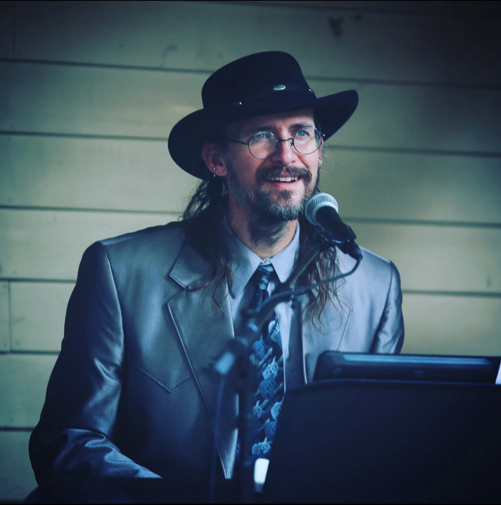 John has been on the stage playing guitar and singing his songs for almost 30 years. But he’s been playing piano or double bass with big bands, pedal steel and accordion in country bands, organ and synth in jam bands, and upright and mandolin with folk groups for almost as long.